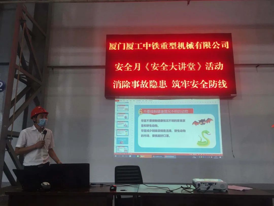6月4日,根據(jù)公司安全生產(chǎn)月活動(dòng)部署,廈工中鐵在生產(chǎn)車間舉行了以“消除事故隱患、筑牢安全防線”為主題的“安全生產(chǎn)大講堂”宣講活動(dòng),一線生產(chǎn)及后勤管理人員共40余人參加。此次宣講活動(dòng)圍繞安全生產(chǎn)與事故典型案例,并結(jié)合《新型冠狀病毒預(yù)防知識(shí)手冊(cè)》與《安全基礎(chǔ)知識(shí)培訓(xùn)》等知識(shí)內(nèi)容展開。