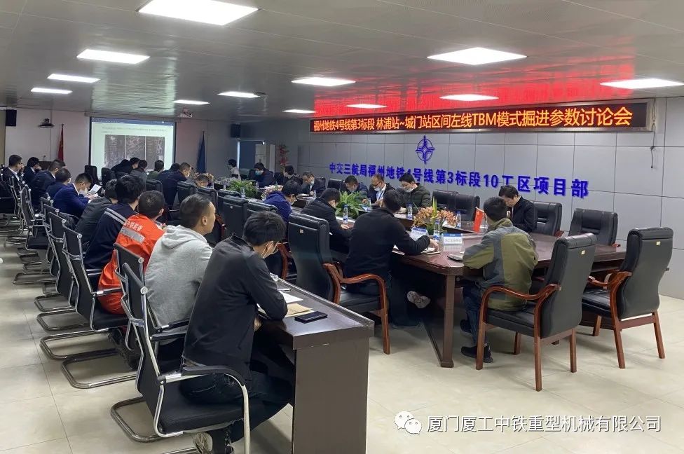4月23日,針對(duì)土壓/TBM雙模式盾構(gòu)(中鐵761/廈工中鐵061)國內(nèi)首次成功完成洞內(nèi)模式的轉(zhuǎn)換及硬巖段試掘進(jìn)的情況,福州軌道集團(tuán)組織召開了“(中鐵761/廈工中鐵061)土壓/TBM雙模盾構(gòu)模式轉(zhuǎn)換驗(yàn)收及TBM模式掘進(jìn)參數(shù)討論會(huì)議”,此次會(huì)議標(biāo)志著洞內(nèi)換模工作結(jié)束、雙模盾構(gòu)TBM工作模式開啟了新征程。